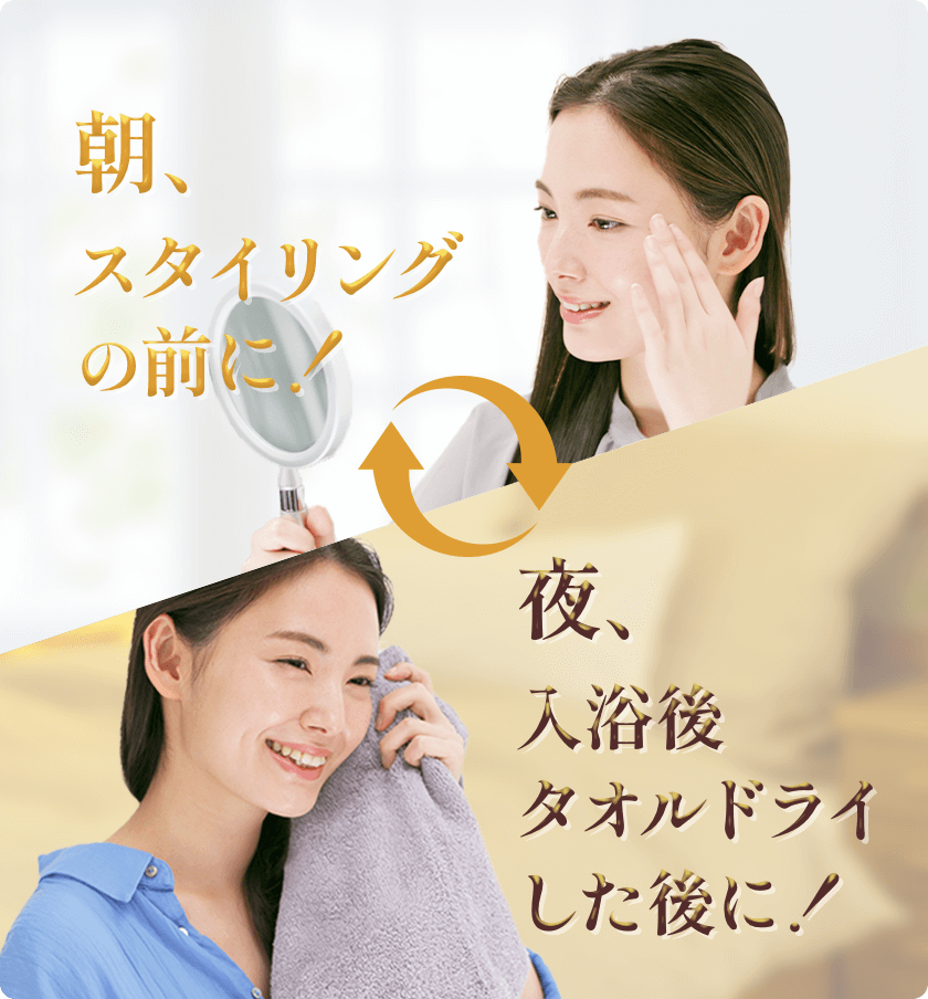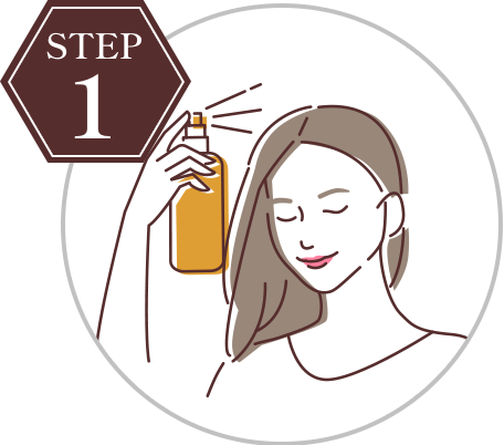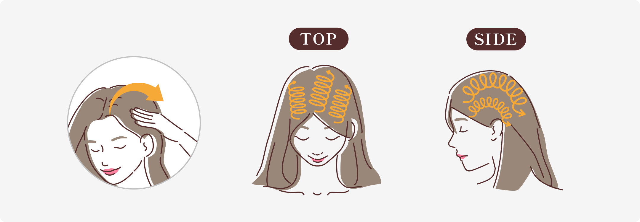 • 髪の根元を立ち上げ、容器を寝かさずに頭皮に1~2プッシュしてください。