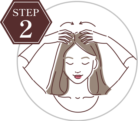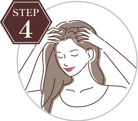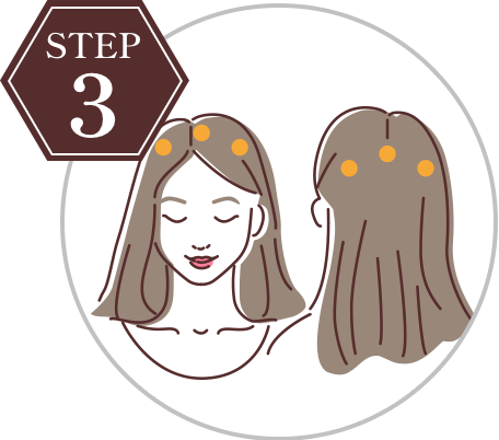 • ①②を繰り返し、気になる部分を中心に頭皮全体に、適量(1回10プッシュ程度)をご使用ください。