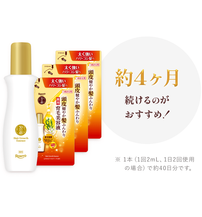 毎日続けて、約4ヶ月(120日間)お使いいただくことをおすすめします。