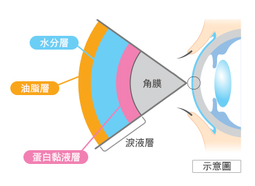 淚液是由油脂層、水分層、蛋白黏液層的3層構造形成的,最外層的油脂層,起到的是防止水分蒸發、保持眼球滋潤的功能。如果能夠通過人工淚液型的產品,為眼睛補充油分,其實對於改善眼睛乾澀是非常好的。但由於隱形眼鏡的鏡片很容易吸附油性成分,迄今為止隱形眼鏡適用的眼藥水,都是通過補給水分、礦物成分、或是提高藥液的粘度來為眼睛提供滋潤的。