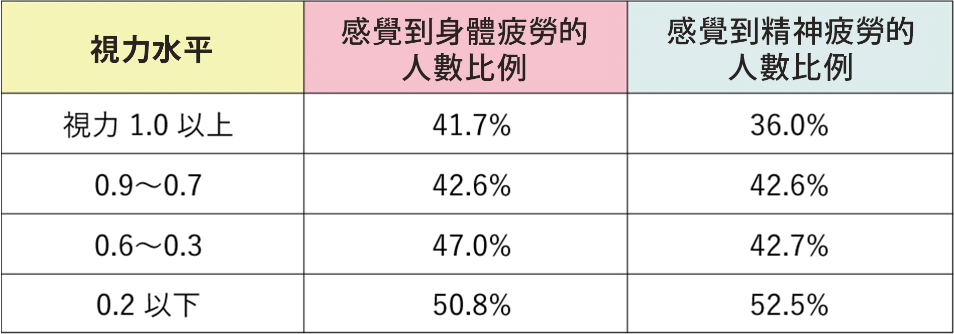 樂敦在調查*2中發現,視力越差的兒童,大腦和身體的疲勞程度也越高。依據這一調查結果,我們推斷,眼疲勞不僅會引發視力低下,還與大腦和身體的疲勞也有關聯。