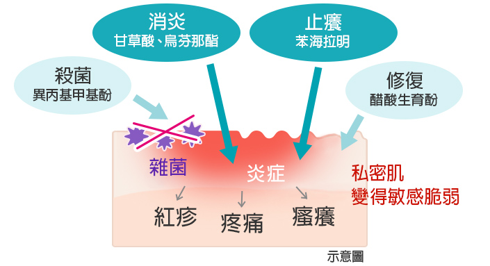 止癢、消炎、殺菌、修復多管齊下,幫您告別難言之隱,幫助私密肌恢復到健康正常的狀態。