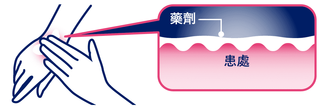 ・塗抹時請讓藥劑輕輕塗開直至覆蓋整個患部。塗抹時不要在皮膚上用力揉搓,而是將藥劑輕輕推開,更利於藥劑在濕疹患處停留。