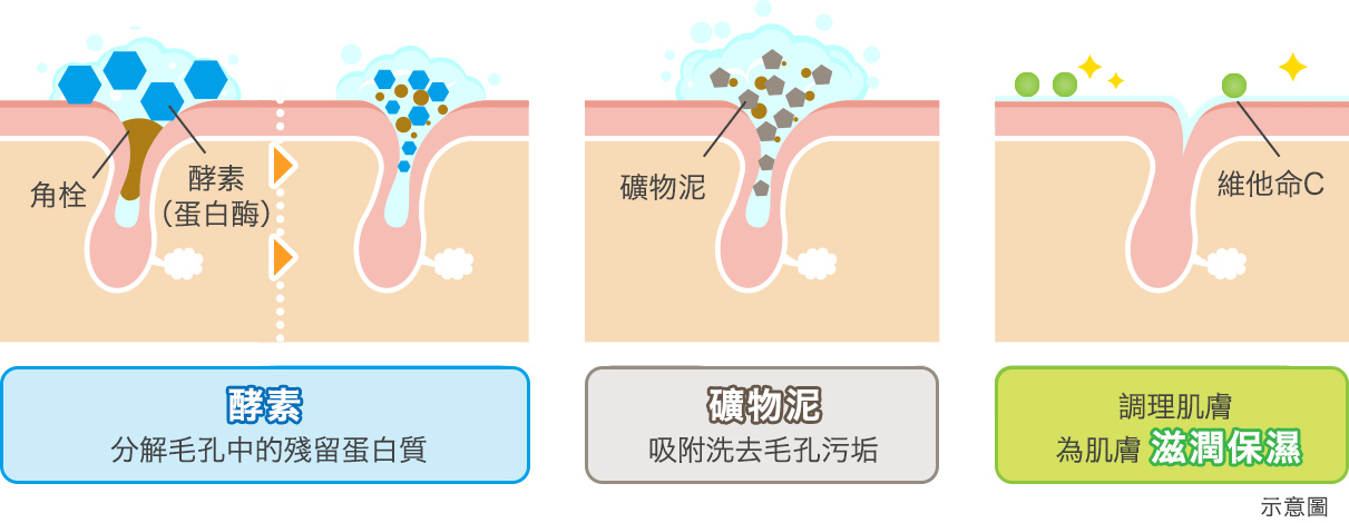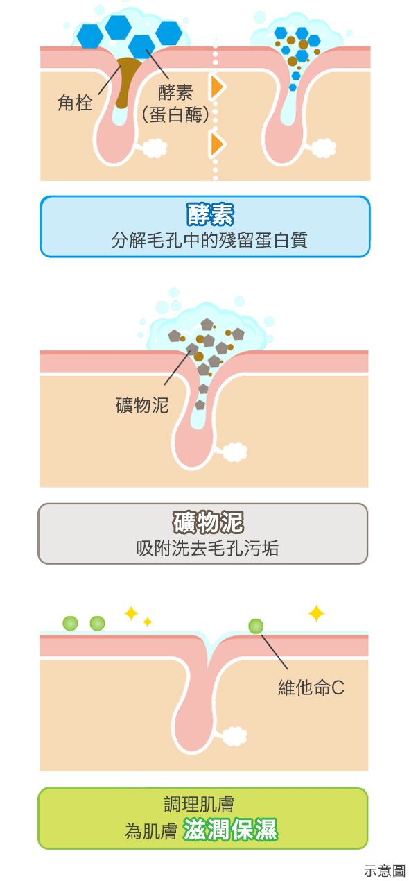 *2成分能夠吸附帶走毛孔中的污垢。而活性維他命C