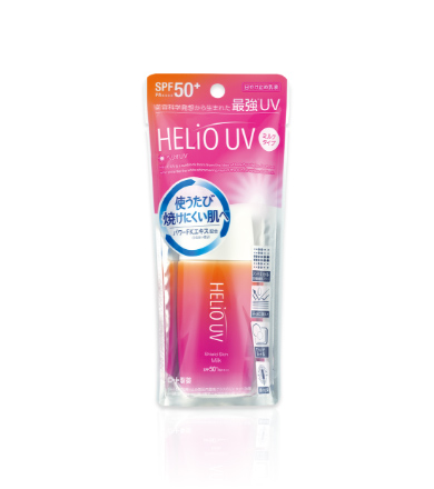 「ヘリオUVシールドスキンミルク」は、美容科学発想の顔・からだ用日焼止めミルクです。シールドスキンTech処方採用。まるで盾のように強力紫外線をカットします。うるおい成分「パワーFKエキス、ビタミンC誘導体、ヒアルロン酸、ハトムギエキス」
