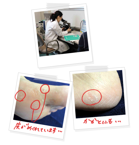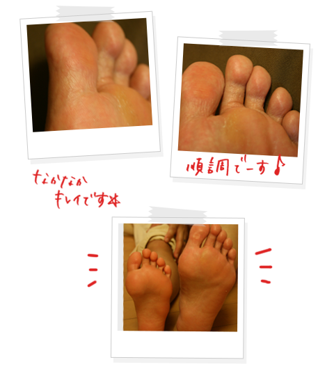 「おぉ?!白癬菌が見当たらないですねー。ほぼ完治かな(笑顔)」