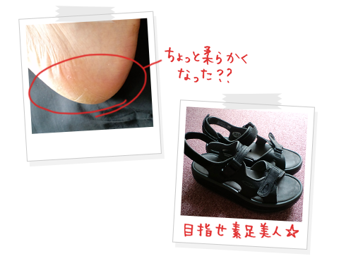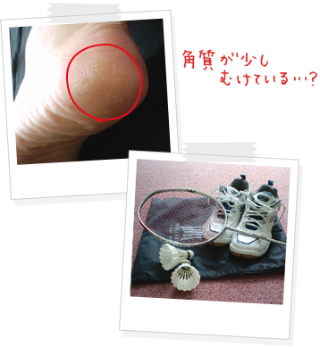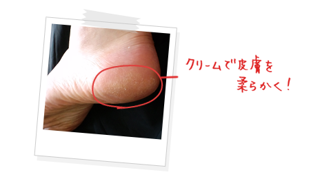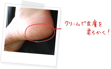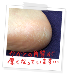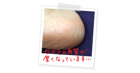 かかとの角質層が厚くなり、硬く、粉をふいたような状態です。