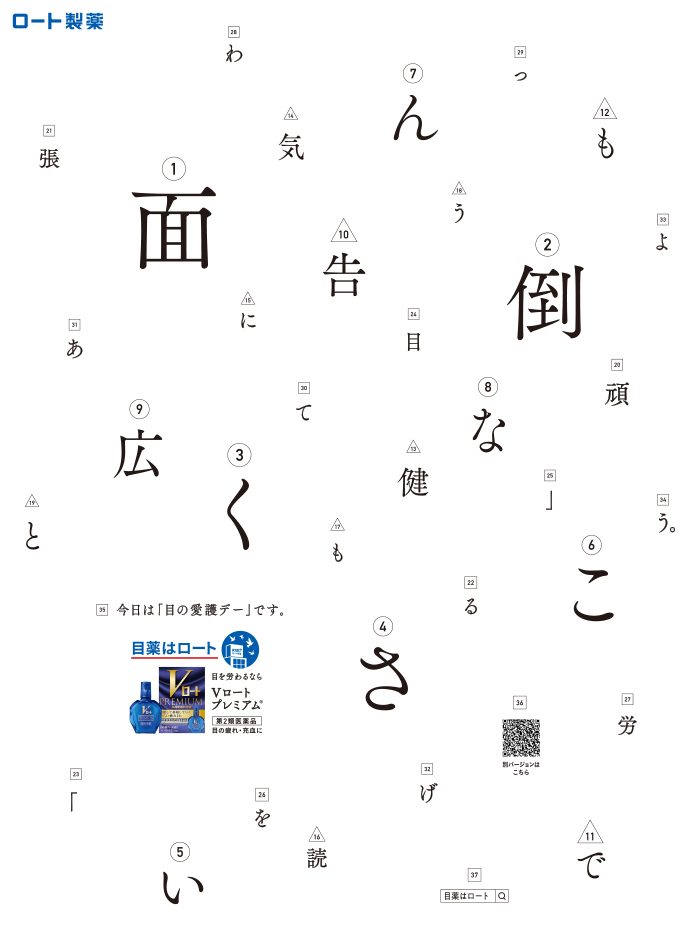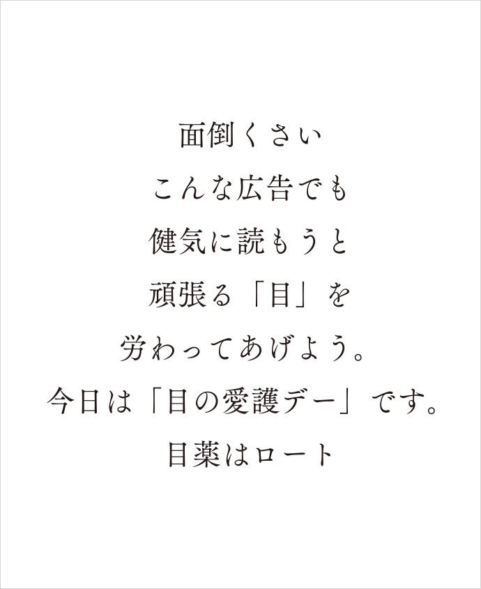 10月10日は「目の愛護デー」。 大切な「目」にどうしても注目して欲しくて、 こんな新聞広告を3種類も作ってしまいました。