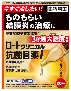 「腫れて痛い」「かゆい」などの、つらいものもらい(麦粒腫)や、「白目が充血し、目やにが多く出る」といった症状の結膜炎を治す、1回使い切りタイプの治療用点眼薬です。人と会う予定があるのにできてしまった、急いで対処したいものもらい、結膜炎に。3つの有効成分※3を基準※4内最大濃度配合。