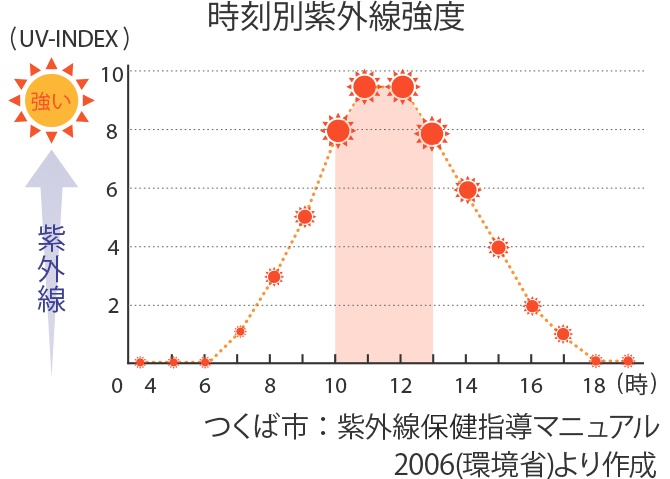 1日のうちで紫外線が最も降り注ぐのは、やはり日中(10時~13時頃)。