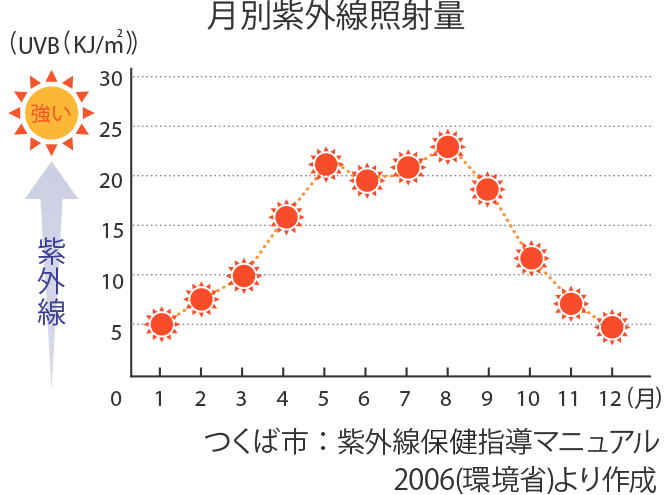 その照射量は4月頃から増加し、8月にピークに達しています。