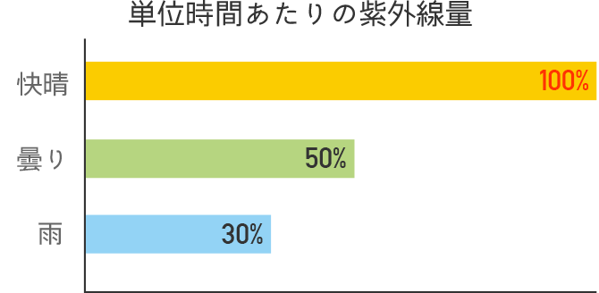 快晴の日に比べ、曇りの日の紫外線は約半分の量だといわれています。