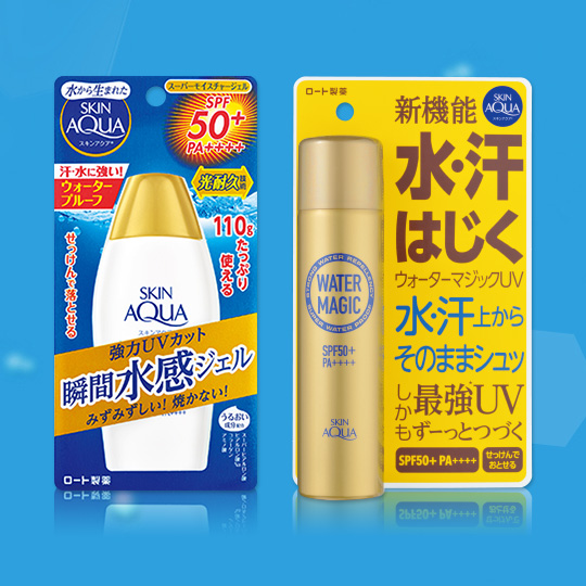 記事一覧へ戻る 紫外線ダメージから肌を守り続けてきた ロート製薬の日焼け止め ロート製薬は、いままでも、そしてこれからも 時代に合わせた製品を研究・開発し続けます こんがり日焼けした肌がブームの時代 メンソレータム® エクセプション 夏の暑さの下でも気持ち良く、楽しく使える、当時世界初の「泡」ではじける日焼け止めを提案。 メンソレータム® サンプレイ® 陽射しが強いレジャーでも、紫外線を気にせず思いきり楽しんで欲しい!という想いから誕生。高いSPF値とウォータープルーフ効果が支持され、ロート製薬は一躍トップブランドへと踊りでました。 美白ブームが巻き起こる クリームタイプが主流の中、水感覚で軽く・透明でつけ心地も快適なのに、高いSPFの日焼け止めを実現。 「日焼け止めの独特のニオイが気になる」というお客様の声にこたえるため、ニオイの原因となる活性酸素を抑制する新発想の技術を搭載! 日本のSPF表記の最高値が「50+」に制定される 紫外線が肌に及ぼす影響が、世の中に浸透していく オレゾ® シミなどの肌変化の約80%は、紫外線の影響によるものであることに着目し、「紫外線と紫外線による肌ダメージ」を徹底的に科学したシリーズを発売。 スキンアクア® スーパーヒアルロン酸※を配合、たっぷりうるおって毎日使える気持ちいい使用感を実現したスキンアクアシリーズ誕生。 ※アセチルヒアルロン酸Na(うるおい成分) ママはぐ ママと子どもでお外遊びでも思いっきり楽しめるように、ママはぐ発売。 気持ちいい使用感の日焼け止めが増えたことで、 季節にかかわらずUV対策をする習慣が定着 気持ちいい使用感なのに、SPF50+の高いSPF値を実現。 水のように圧倒的に気持ちいい、スキンアクアスーパーモイスチャージェルに「光耐久技術」※を採用。ウォータマジックUVは新機能「はっ水型」として誕生。水・汗シーンの日焼け止め習慣をより快適に変えていきます。 ※光によるUVカット機能の低下が起こりにくい独自成分配合