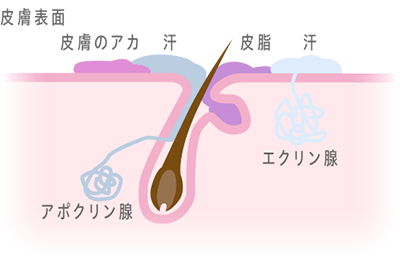 アポクリン腺から出る汗はタンパク質、糖質、アンモニアなどを含んでいます。