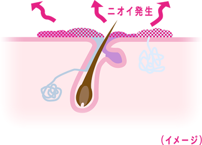 それらを「コリネバクテリウム属菌」などが分解することでワキガの独特なニオイが発生。