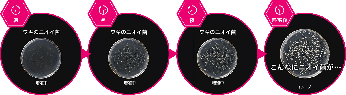においの元となる菌を、2種類の殺菌成分でしっかり殺菌するとともに、不快な汗を抑え、気になるワキのニオイを防ぐシリーズです。また、効果が長持ちする処方です。