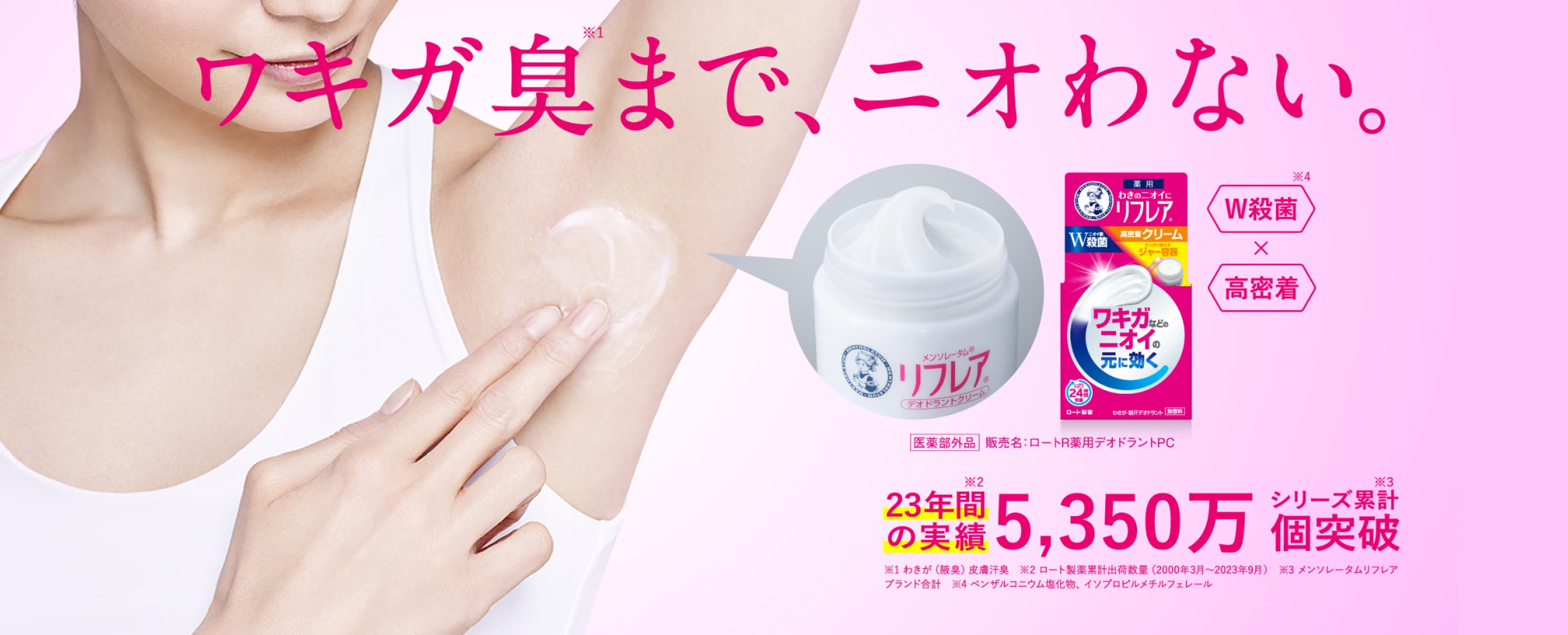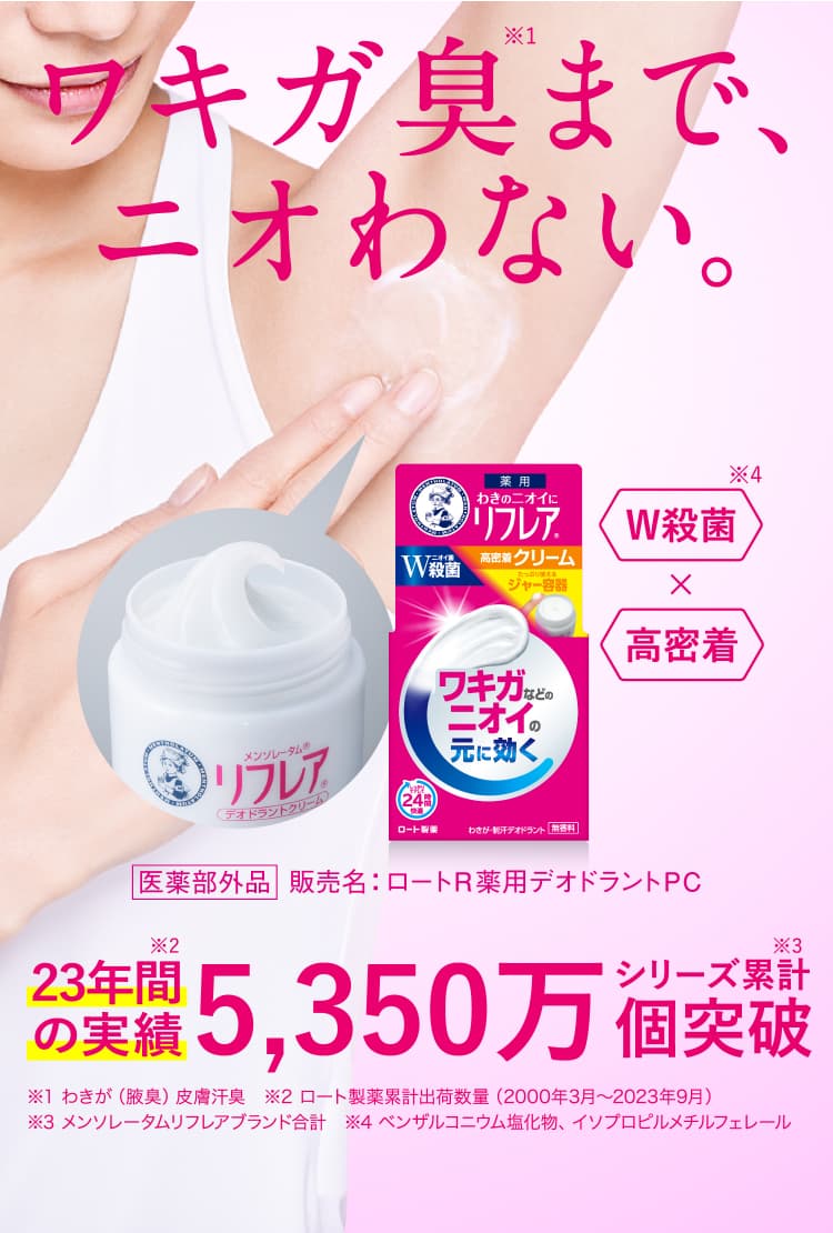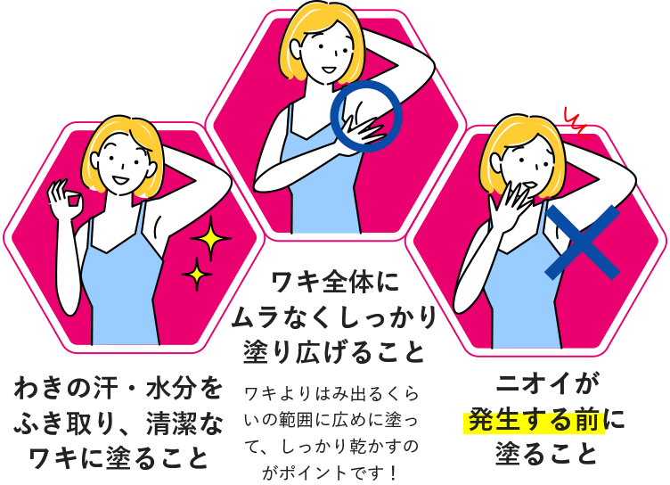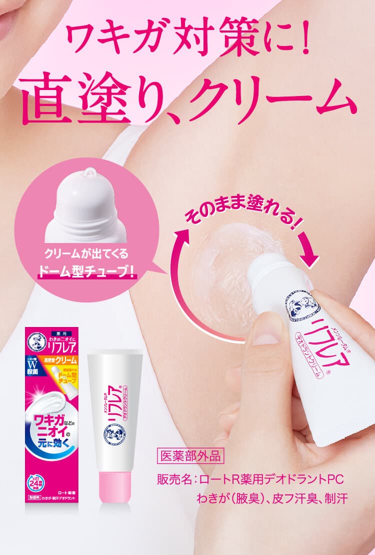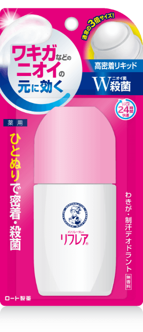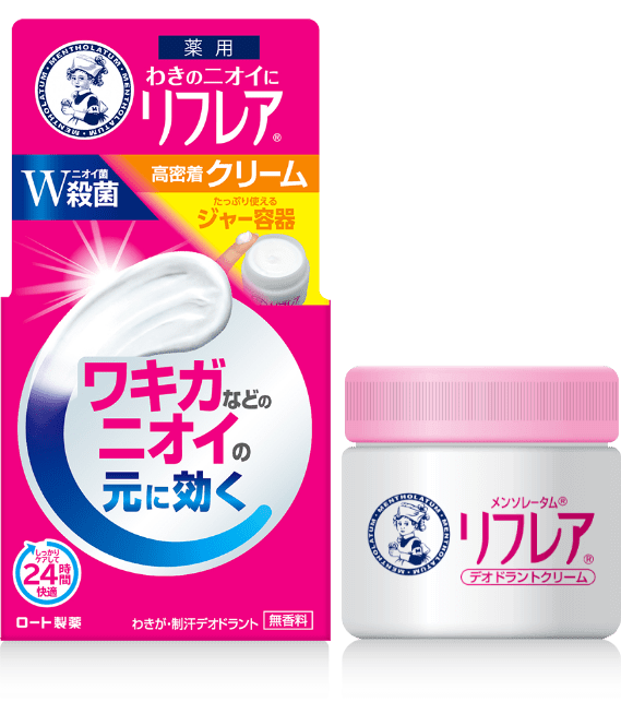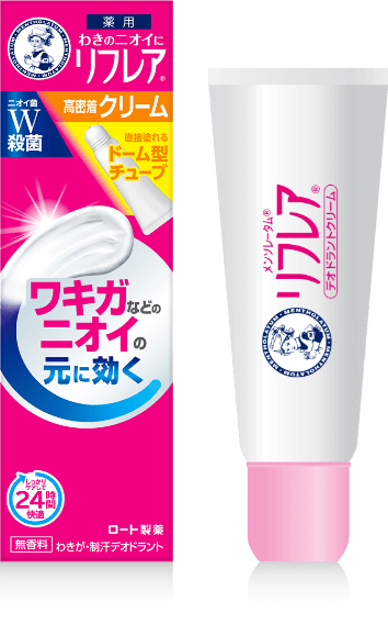 Wの殺菌有効成分を配合した、製薬会社がワキガのニオイ対策を本気で考えて作った制汗剤です。すみずみまで塗りこんで、ニオイを発生させる原因菌を徹底殺菌します。