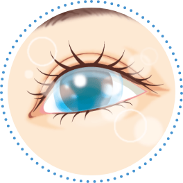 瞳に製剤がとどまり、うるおいの膜を張ることで、涙の蒸発を抑えます。高粘度のため点眼後すぐは視野がぼやけることがありますが、時間がたつにつれおさまります。