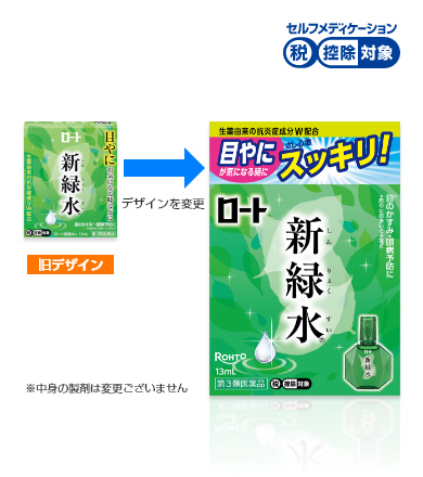 涙の循環が悪くなると、溜まった老廃物が目やにとなったり、炎症が起きやすくなります。「ロート新緑水b」は、生薬由来の抗炎症成分(ベルベリン塩化物水和物、アズレンスルホン酸ナトリウム水和物)をダブルで配合し、炎症をしっかり鎮めて、目のかすみ、眼病予防に効果を発揮する目薬です。目やにが出た時だけでなく、就寝前(就寝より5分以上前を目安)にも点眼することをお勧めします。