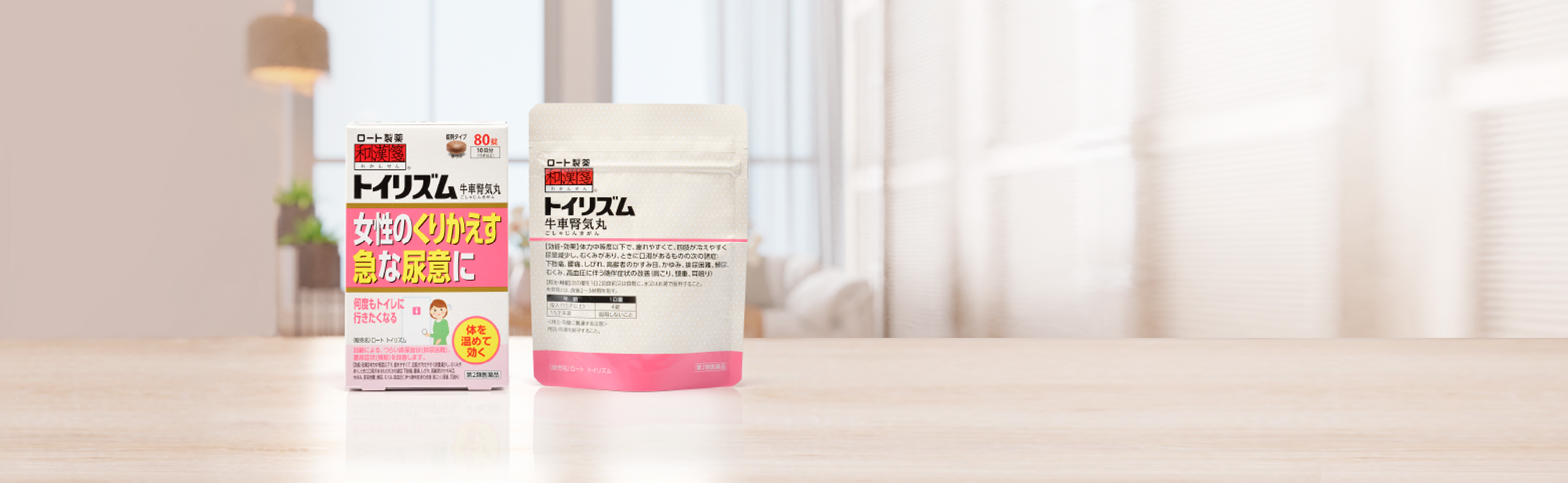 ロート トイリズムに含まれる牛車腎気丸は、加齢による排尿トラブルに効果的な八味地黄丸に、利水作用がある生薬ゴシツ、シャゼンシを加えた漢方薬。