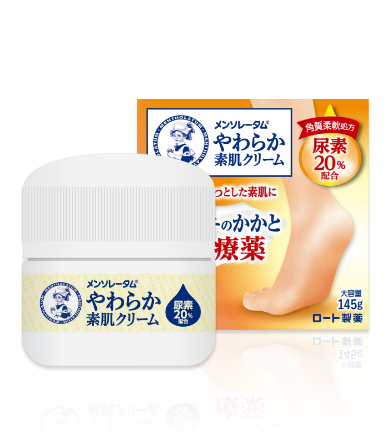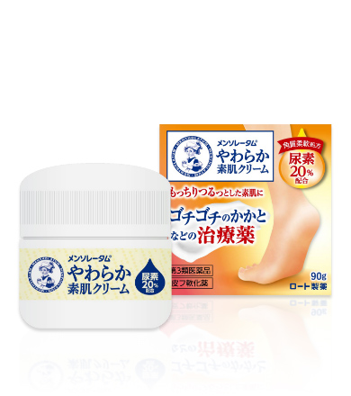 「メンソレータムやわらか素肌クリームU」は、皮膚に水分を取り込む尿素20%に、血行を促進するビタミンE誘導体を組み合わせた「角質柔軟処方」が特徴のクリームです。さらに、成分がしみこみやすい「高浸透処方」も採用。3つの有効成分(尿素・ビタミンE誘導体・グリチルリチン酸一アンモニウム)配合で、かたく荒れた皮膚にうるおいを浸透させながら、ふっくらとした肌本来のやわらかさへ戻していきます。
